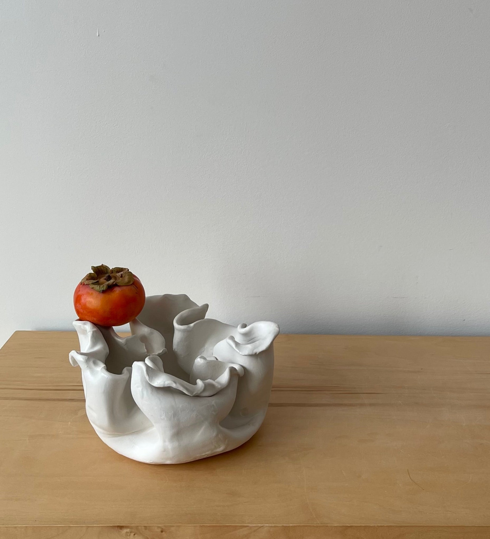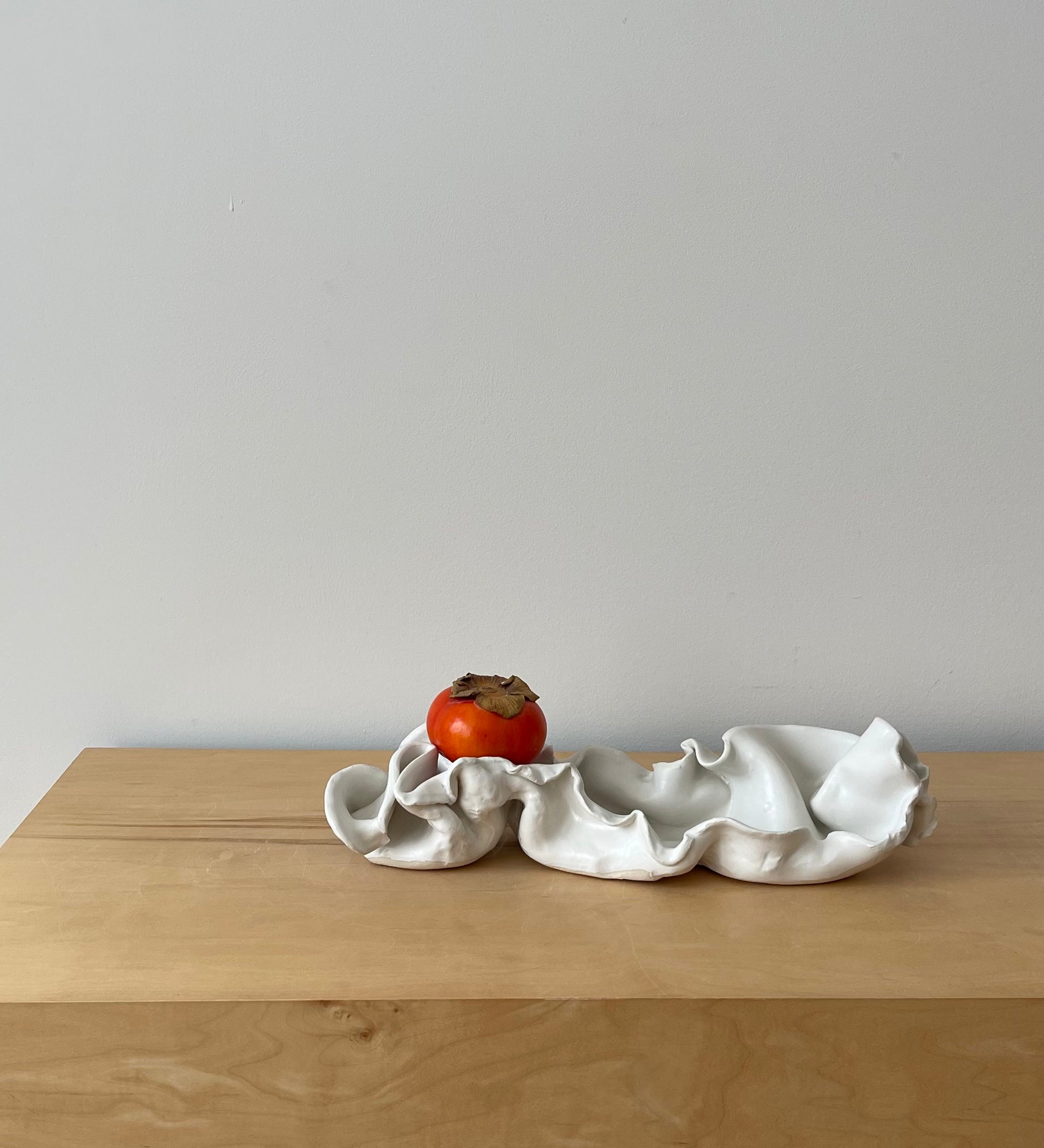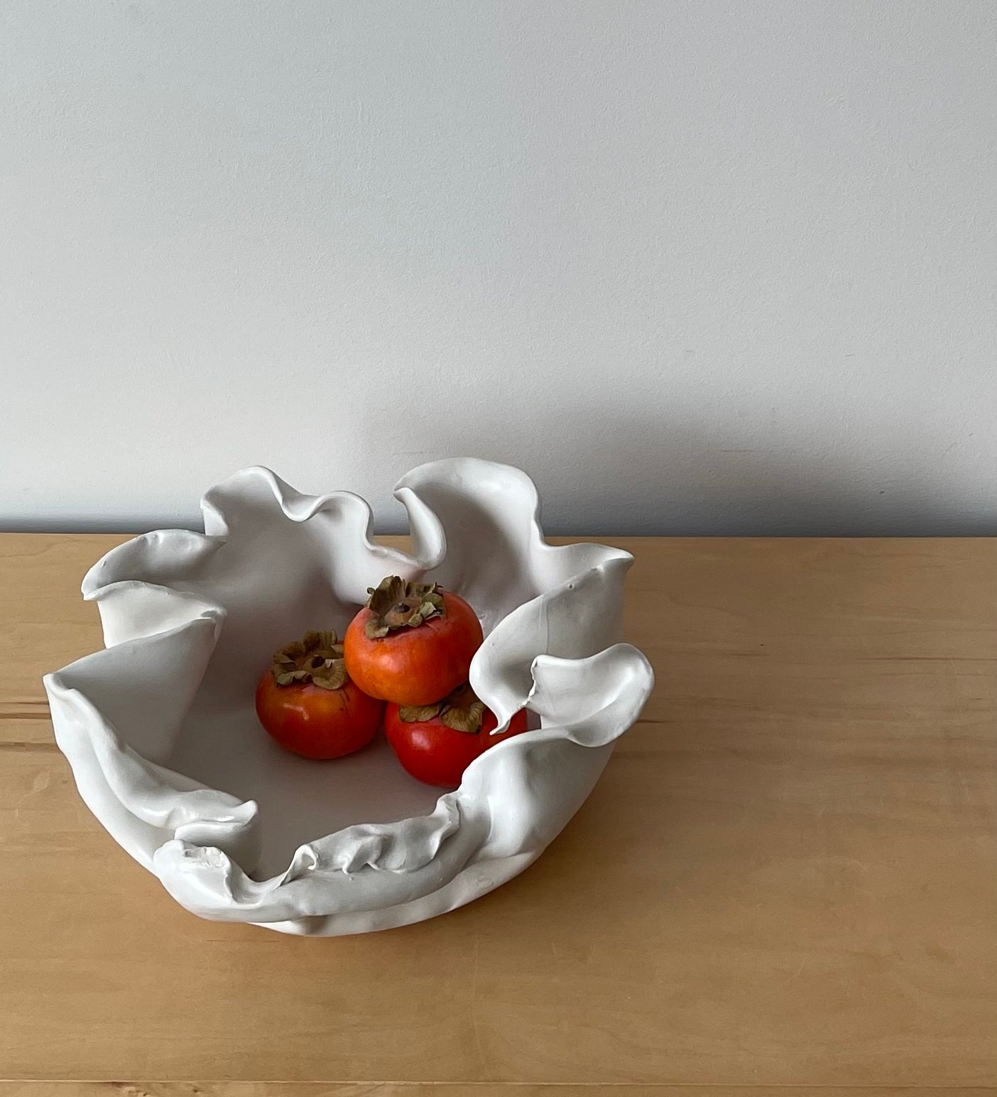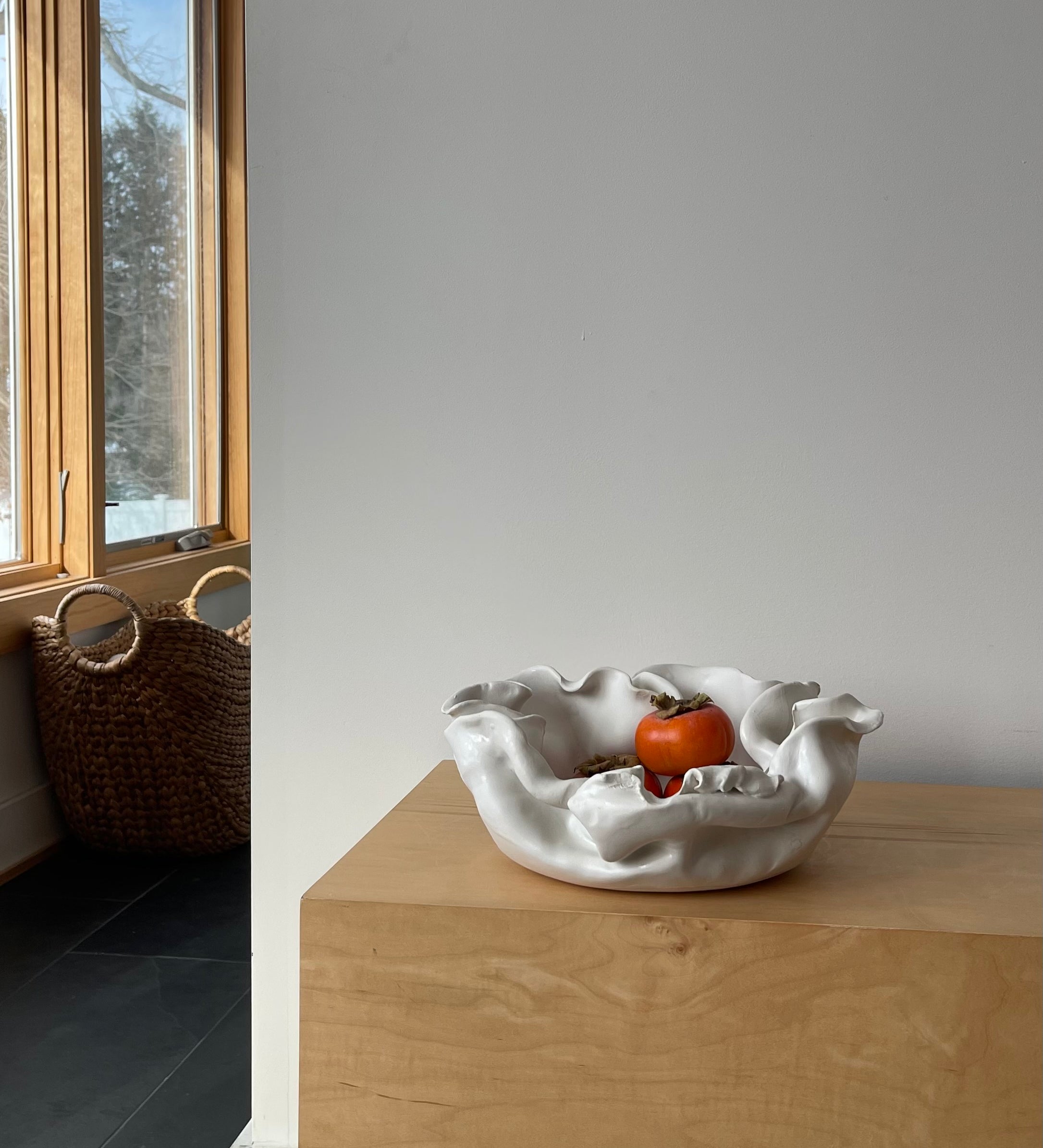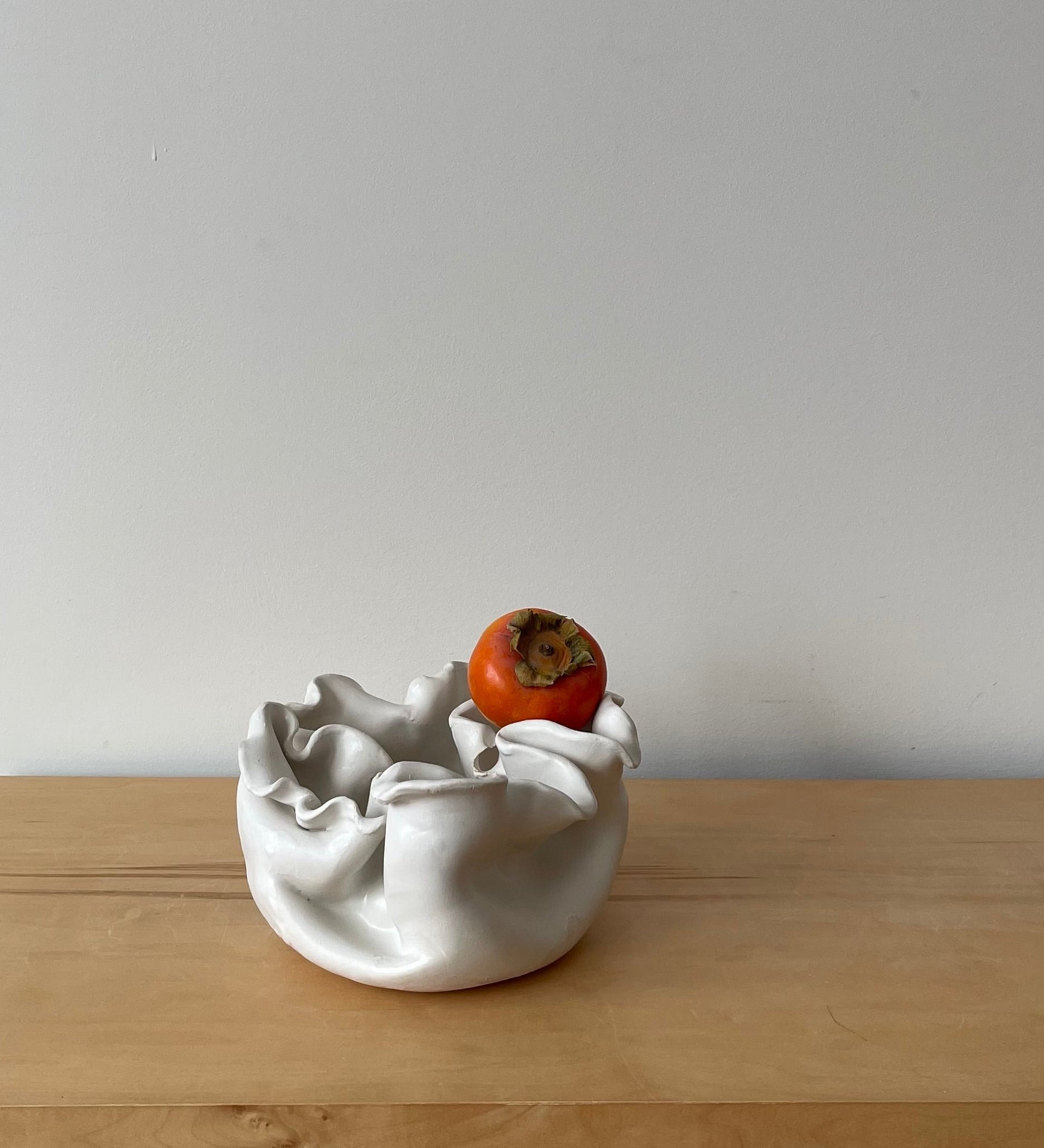 14" Lone Crumpled Ruffle Bowl | Matte White