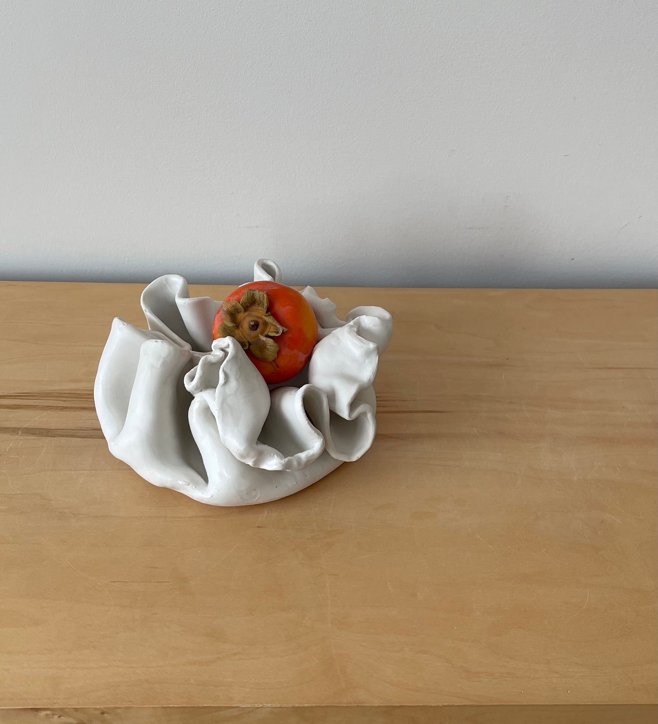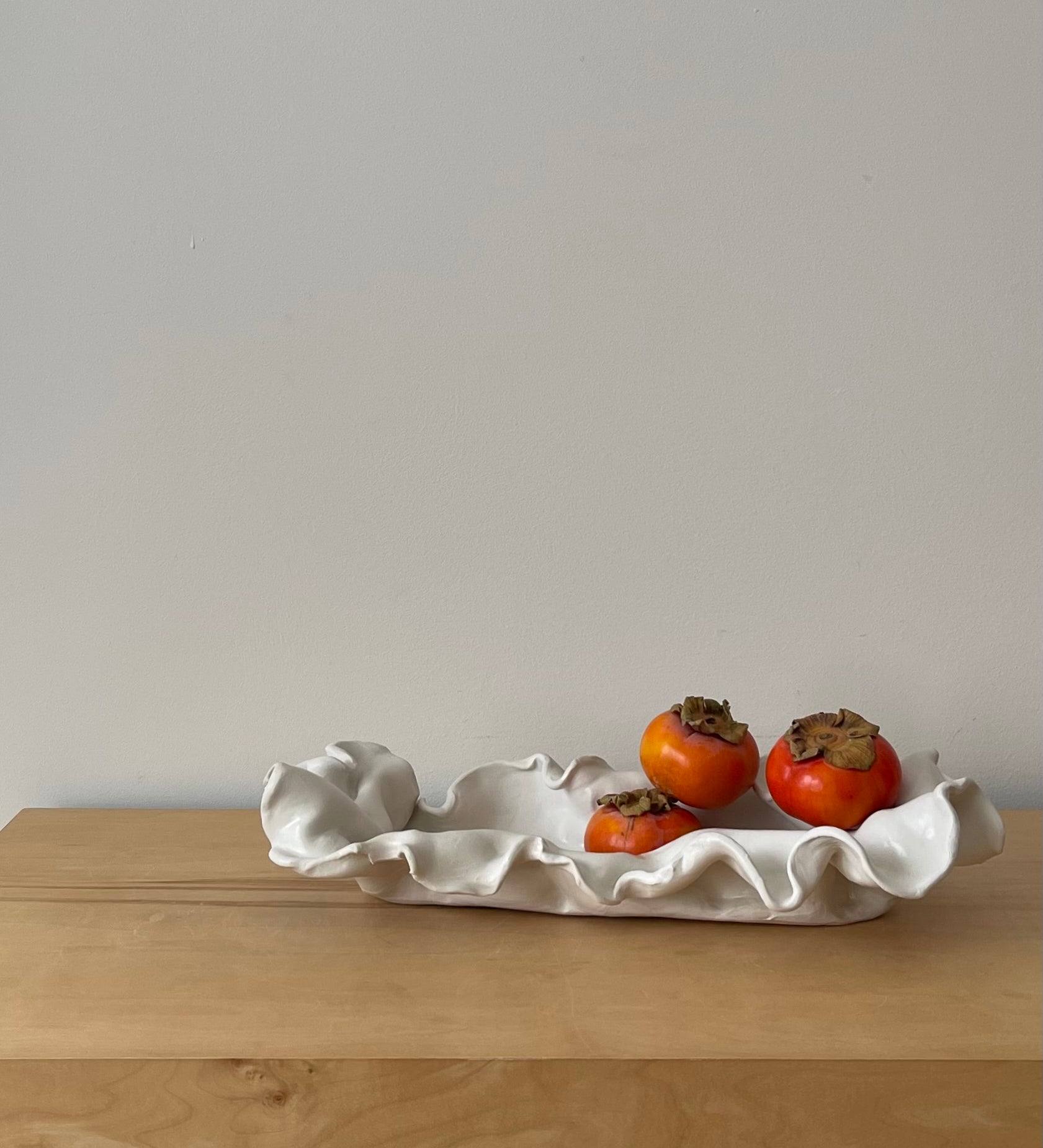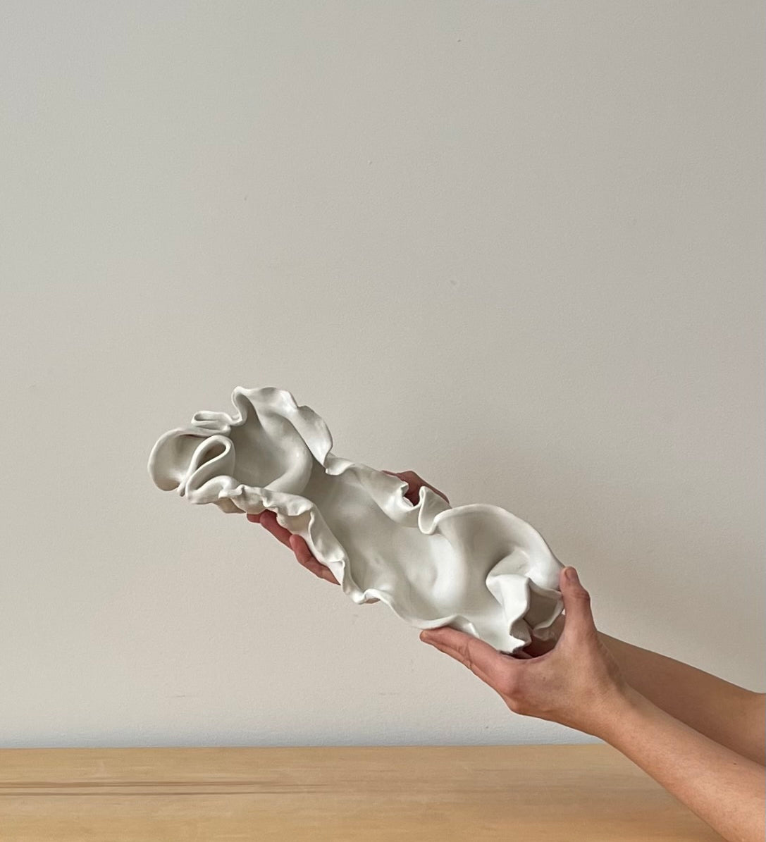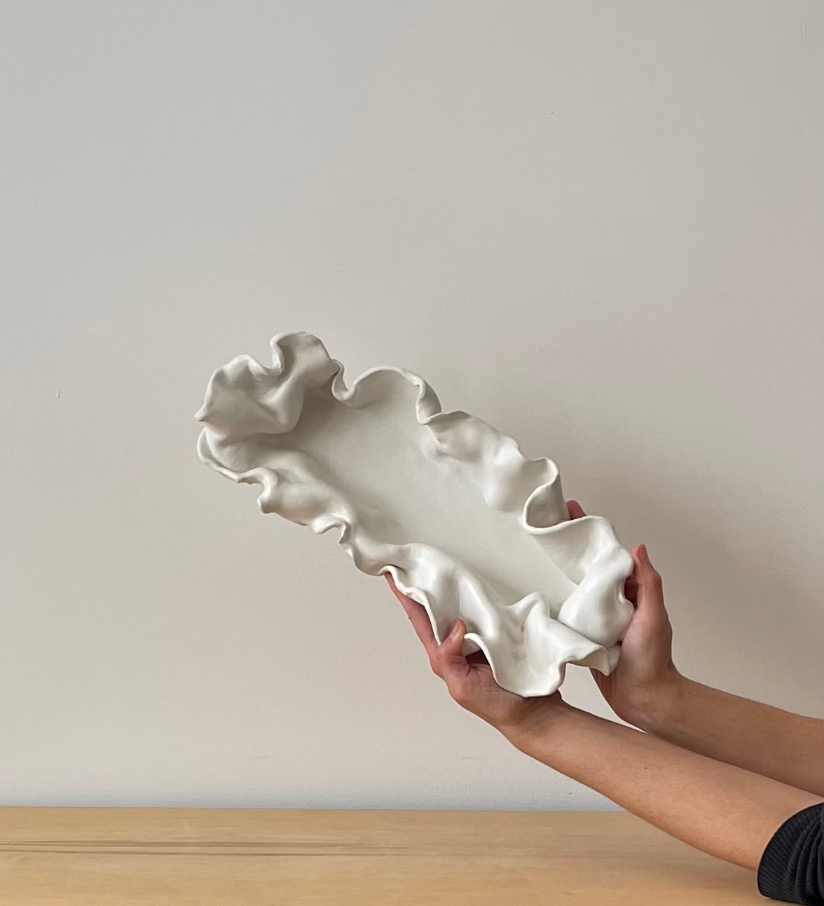 14" Lone Crumpled Ruffle Bowl | Matte White