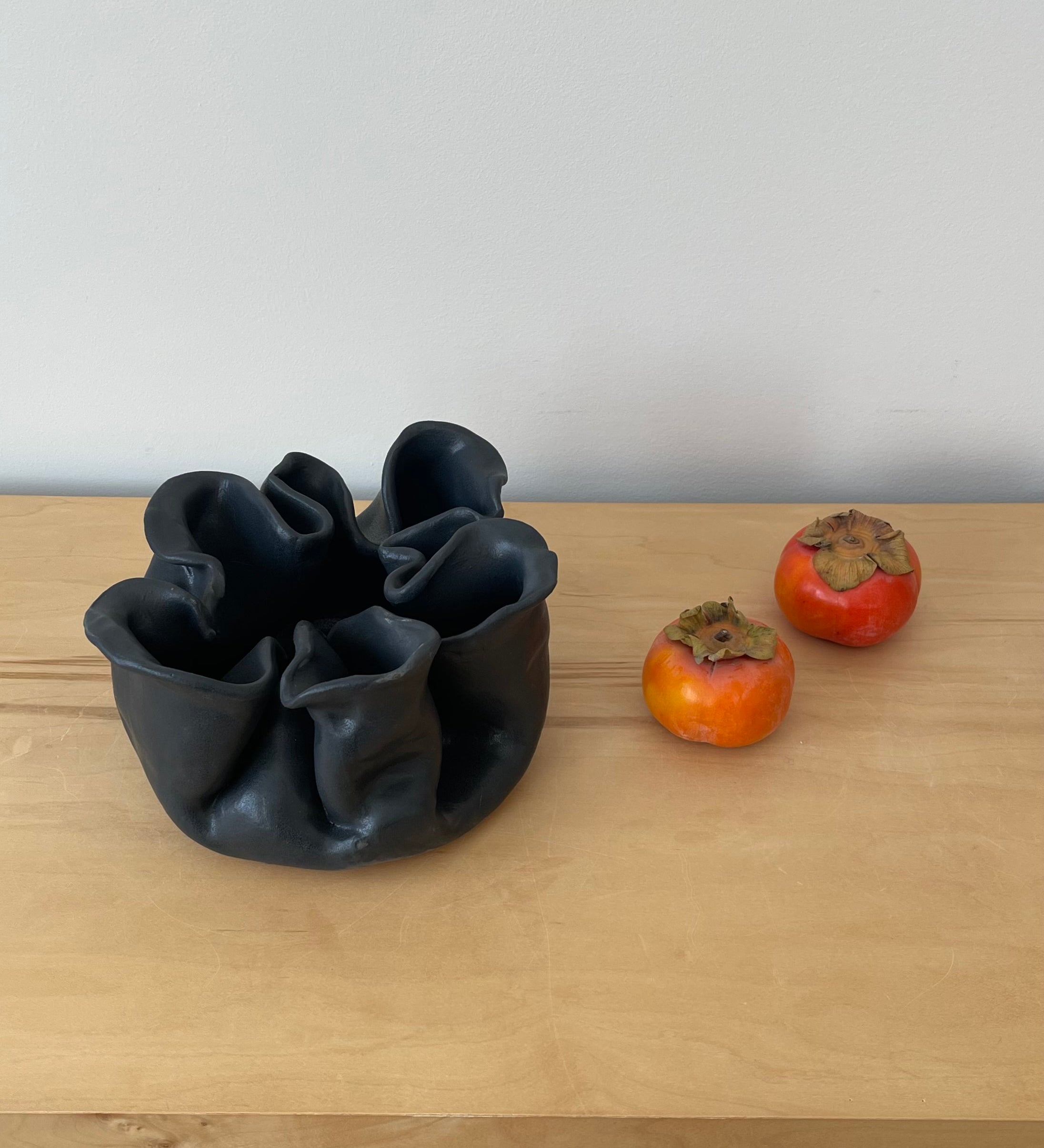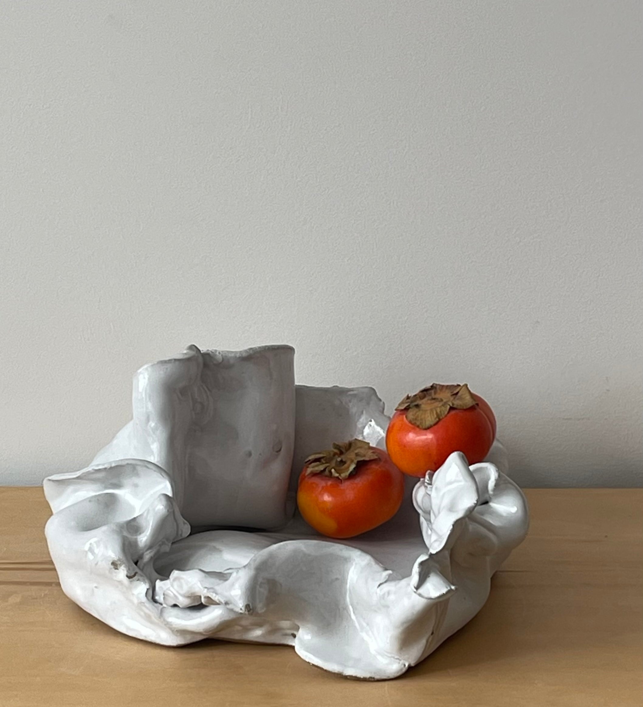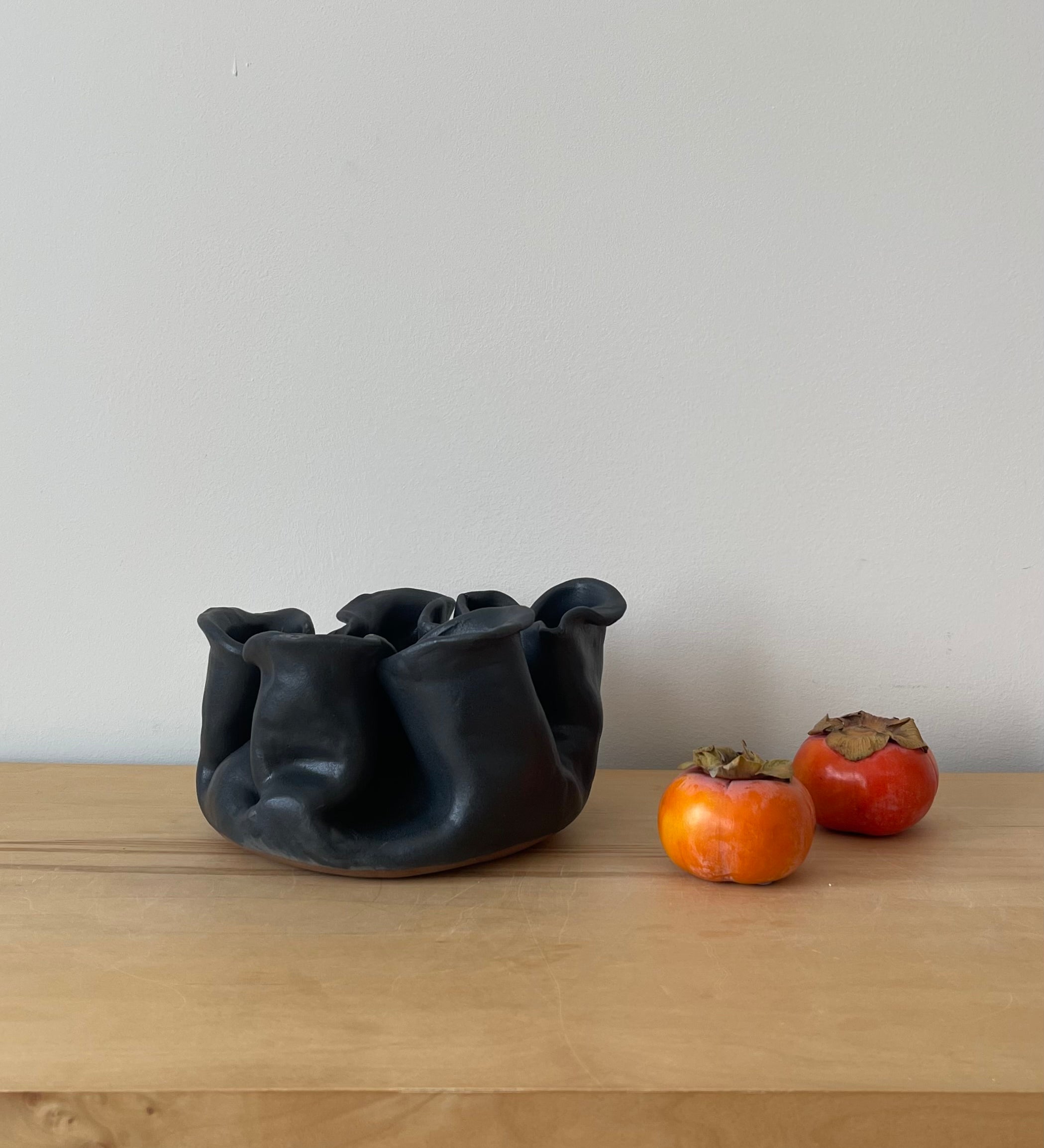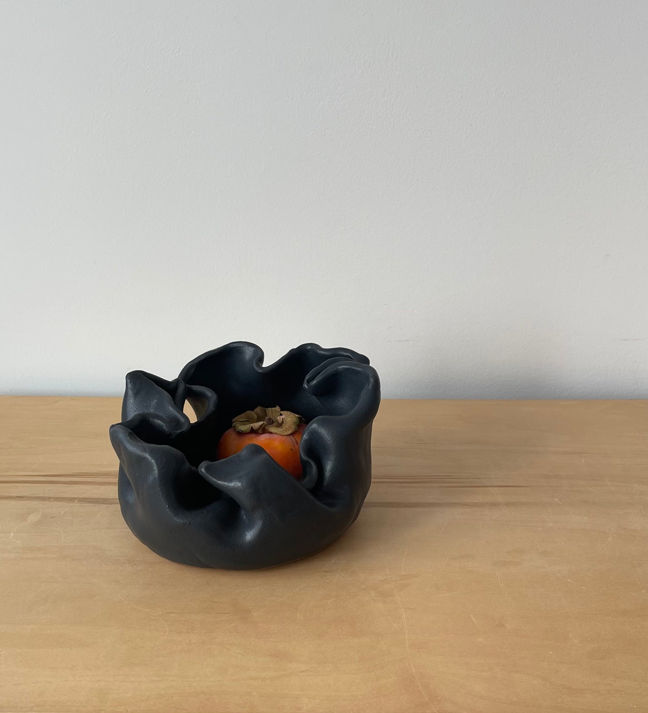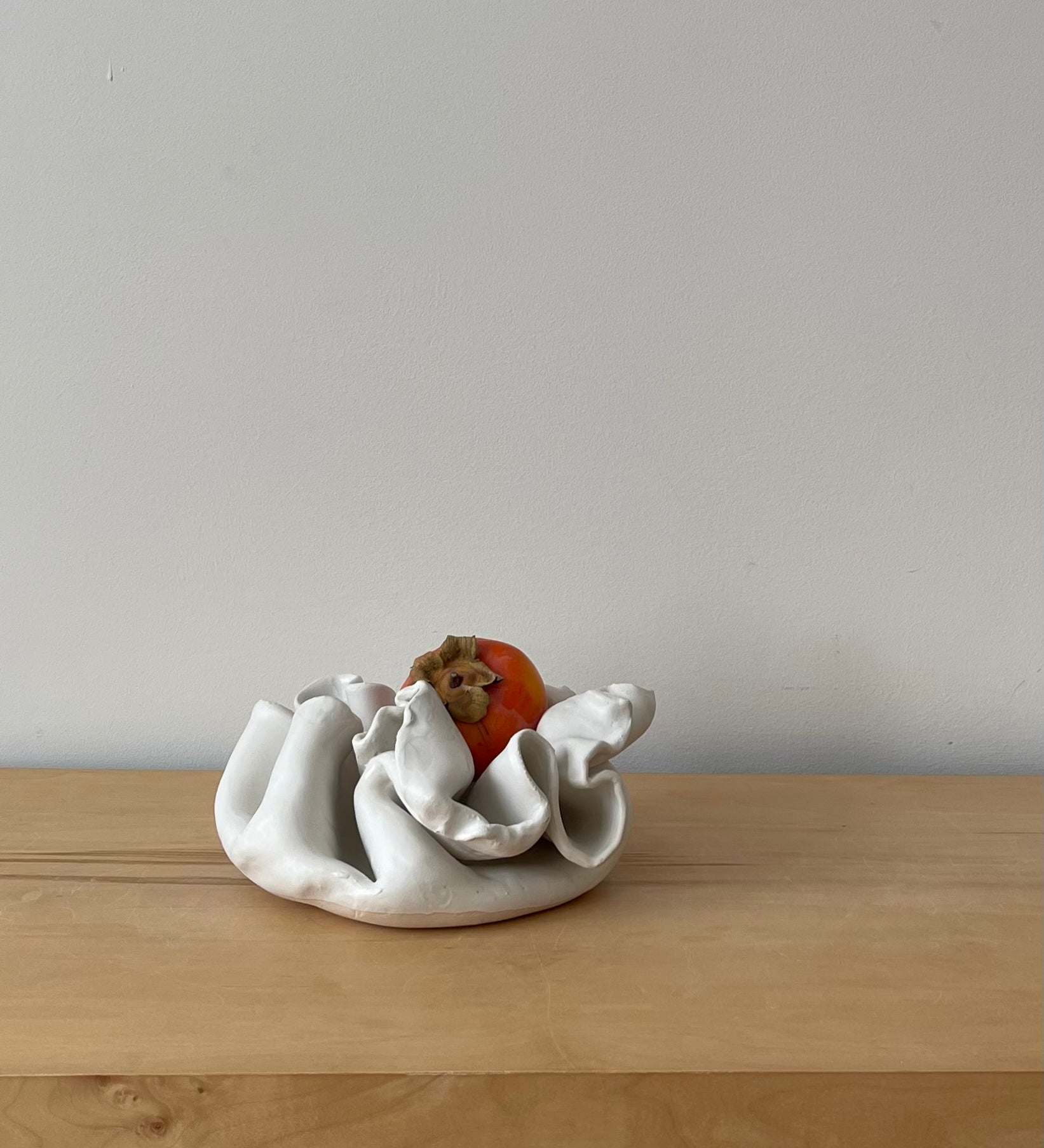 14" Lone Crumpled Ruffle Bowl | Matte White