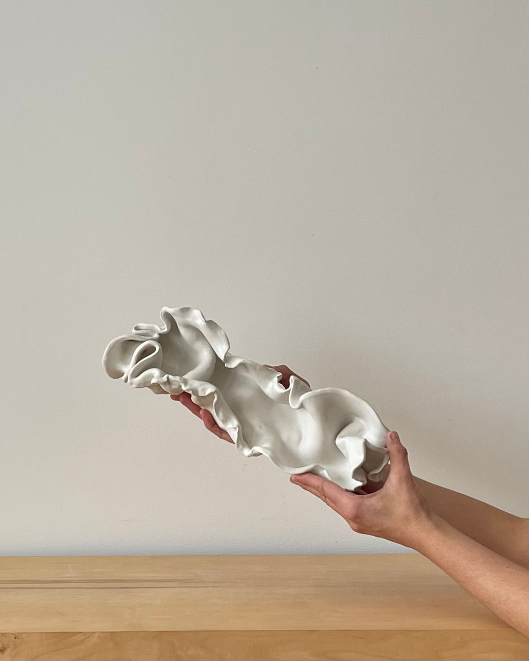 Hand-formed ruffled bowl finished with a gorgeous, matte white glaze. One of a kind.