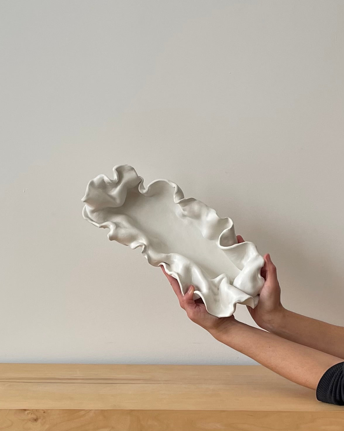 Hand-formed ruffled bowl finished with a gorgeous, matte white glaze. One of a kind.