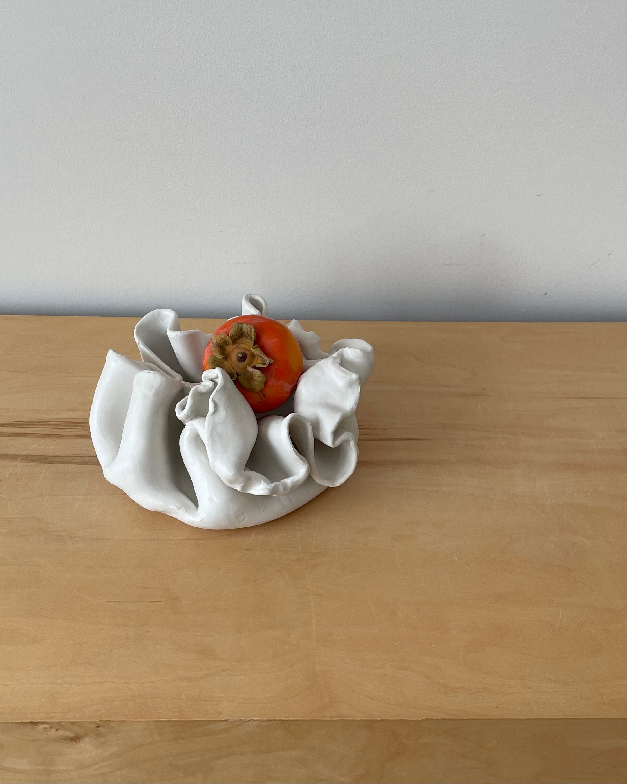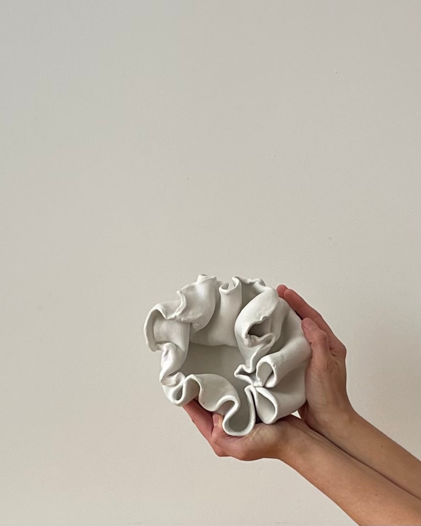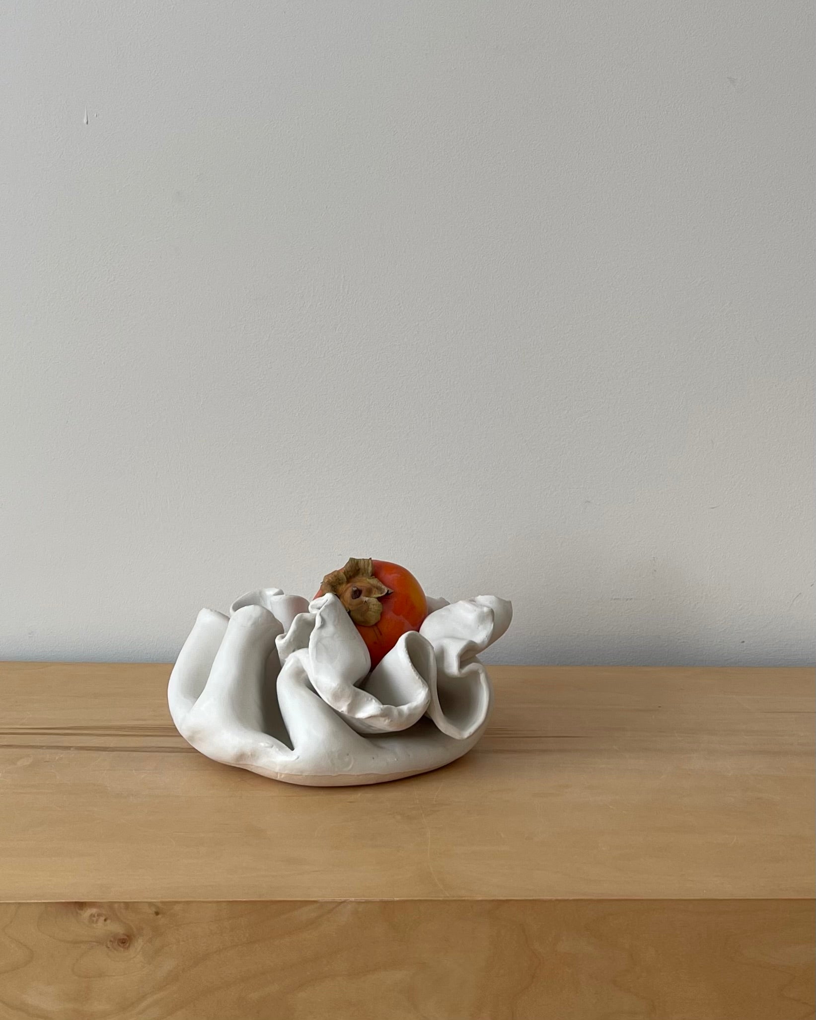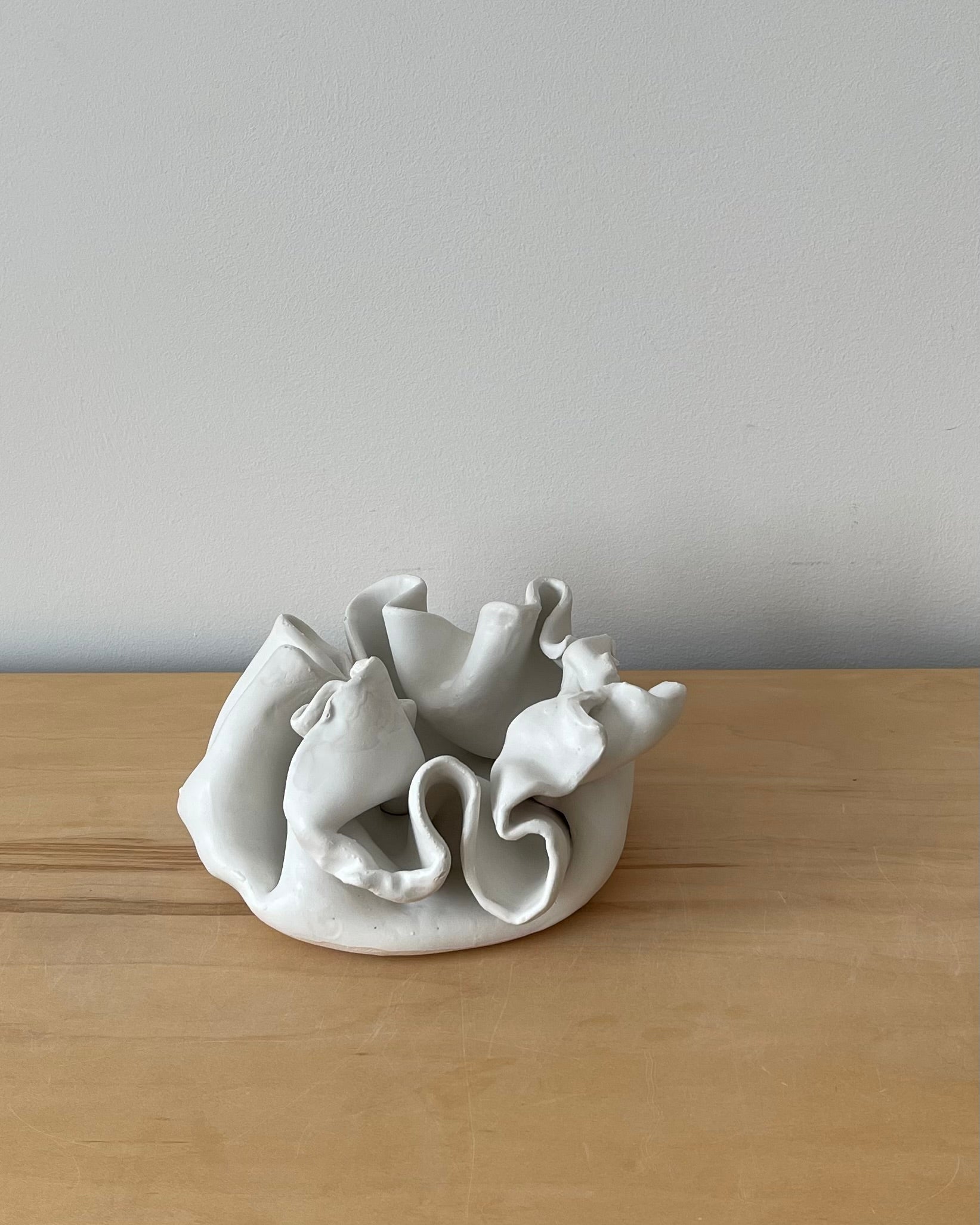 Hand-formed, sculptural bowl finished with a matte white glaze.