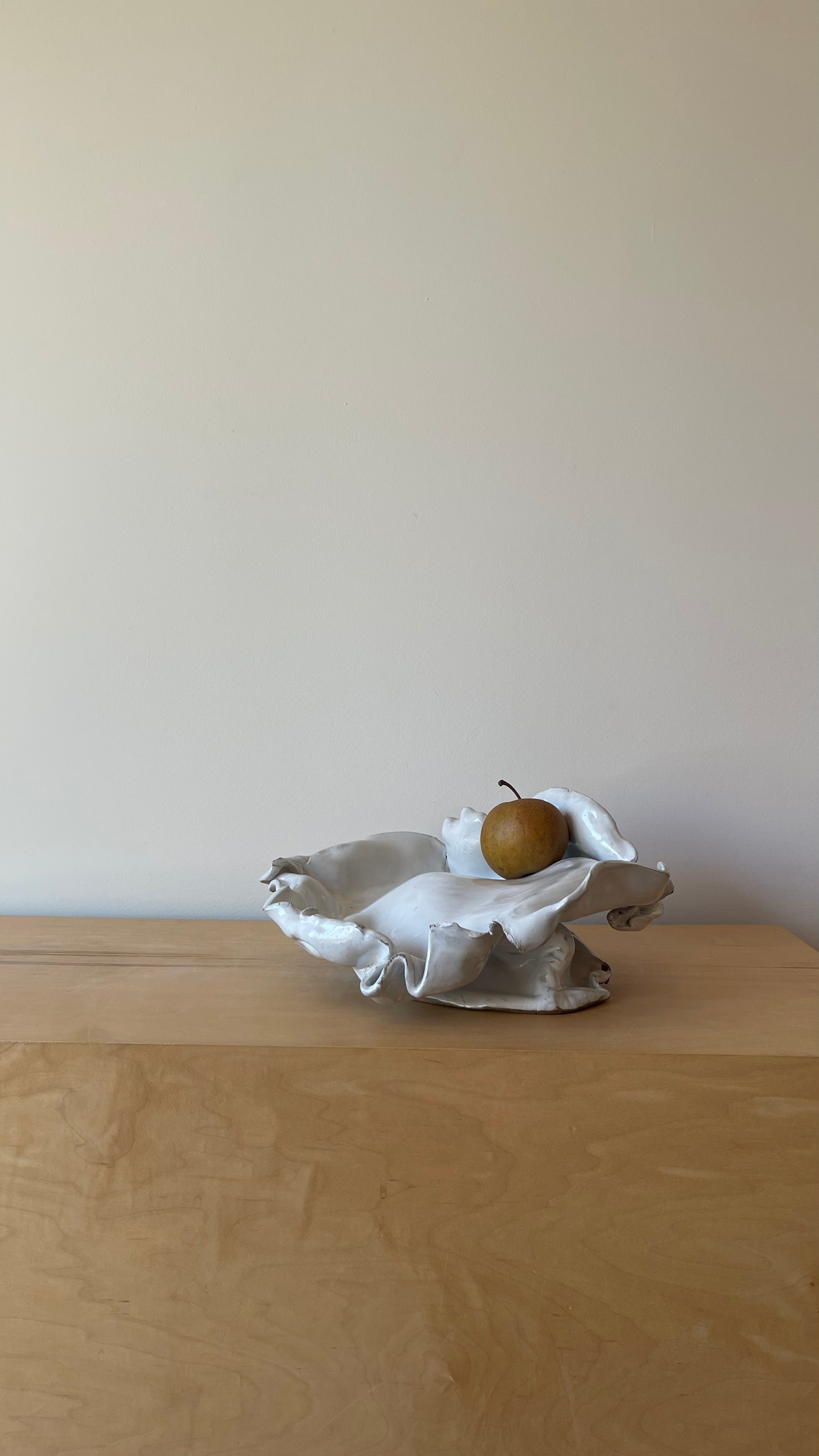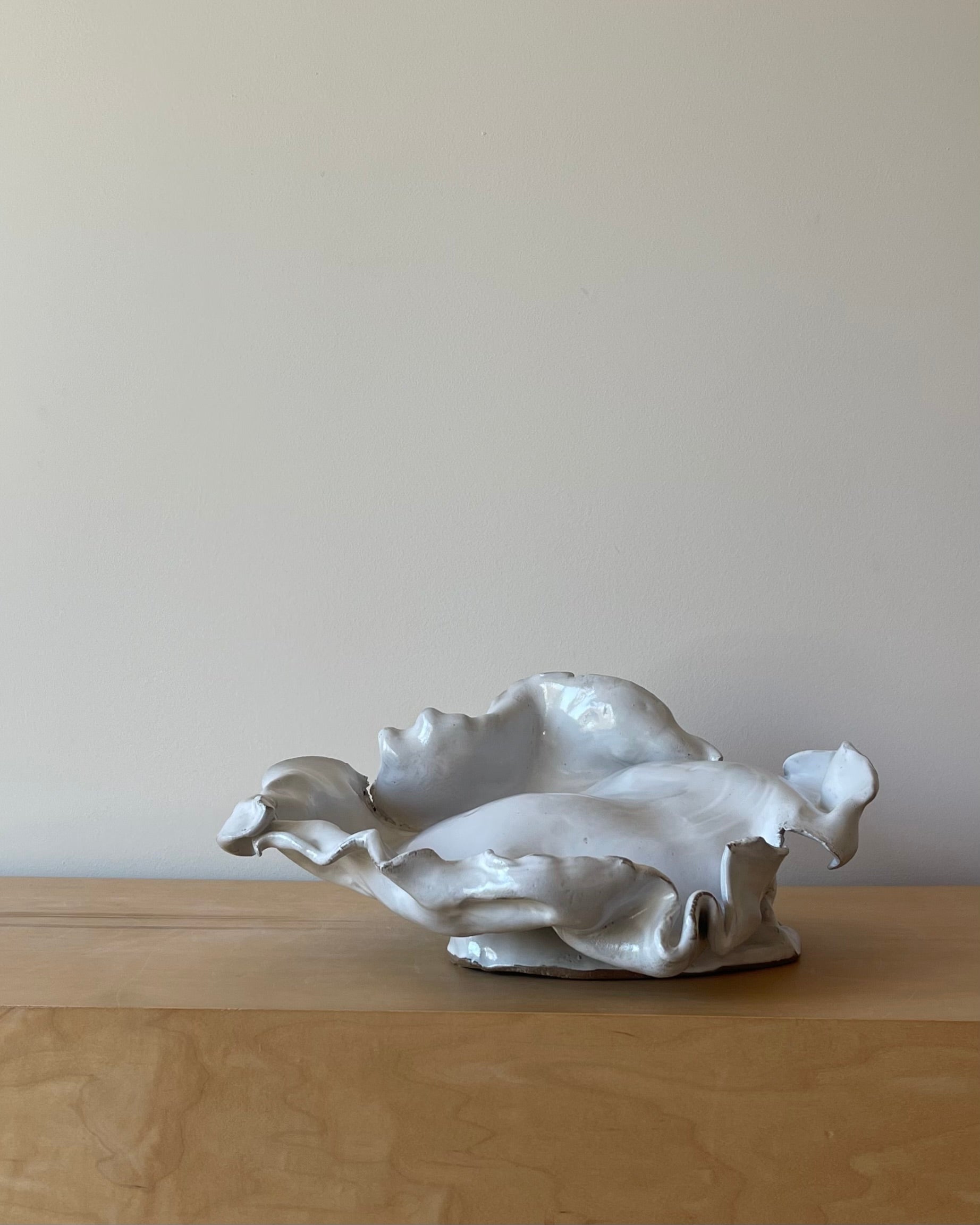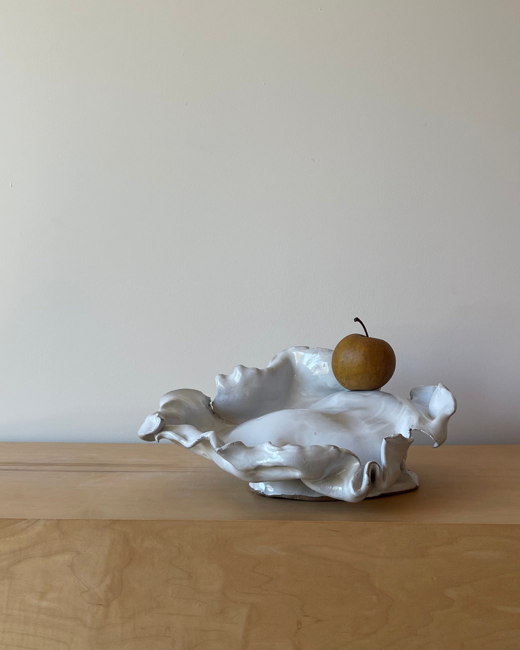 OOAK, elevated bowl. Hand-formed of brown stoneware, finished with glossy white glaze.