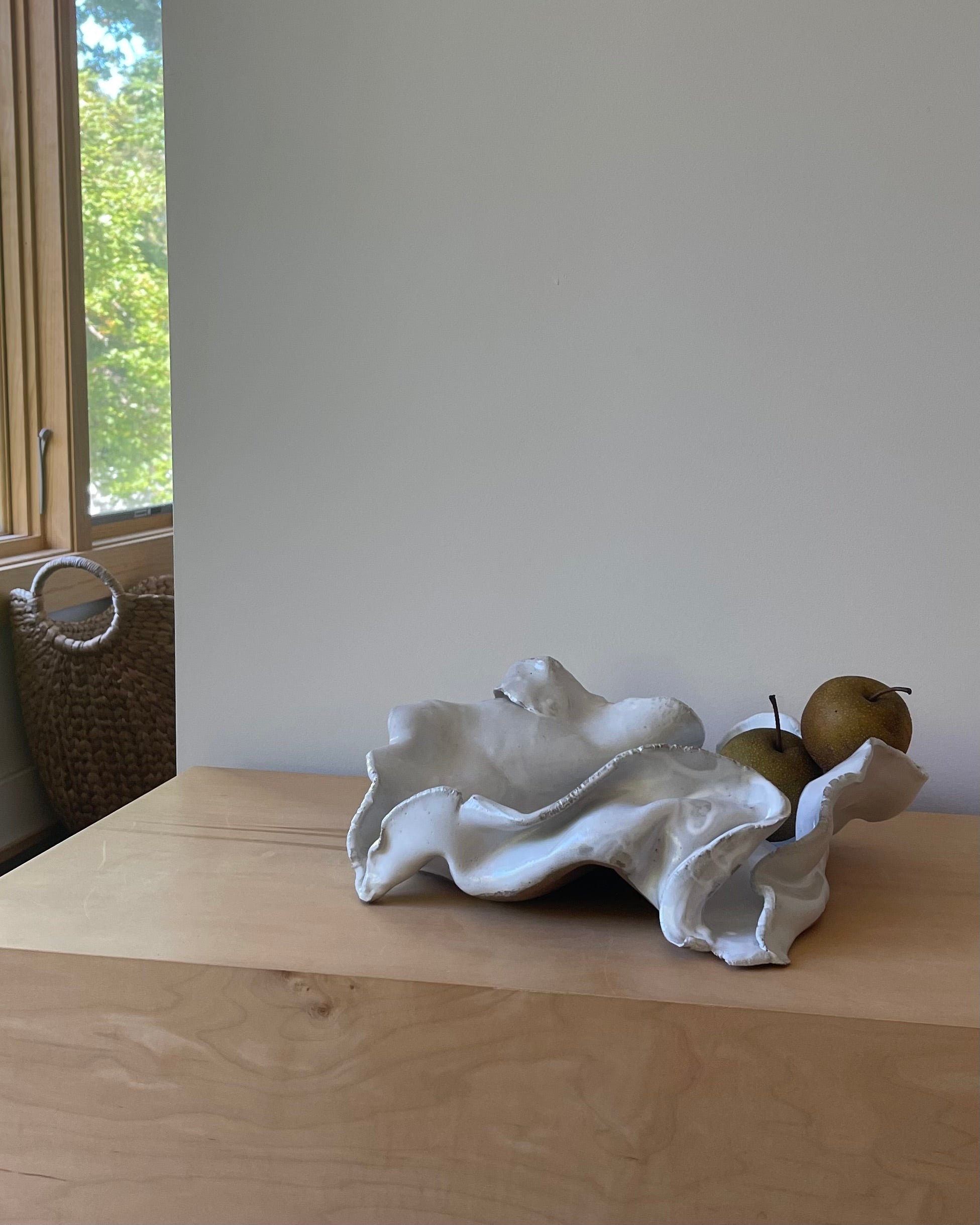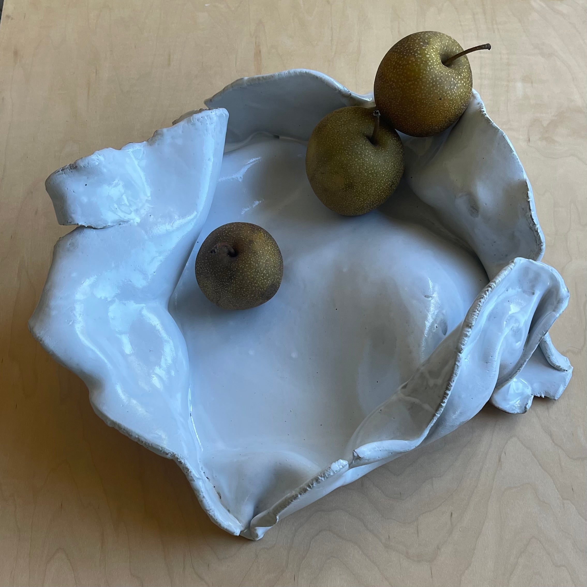 One of a kind, hand-formed bowl. Glossy white glaze over brown stoneware.
