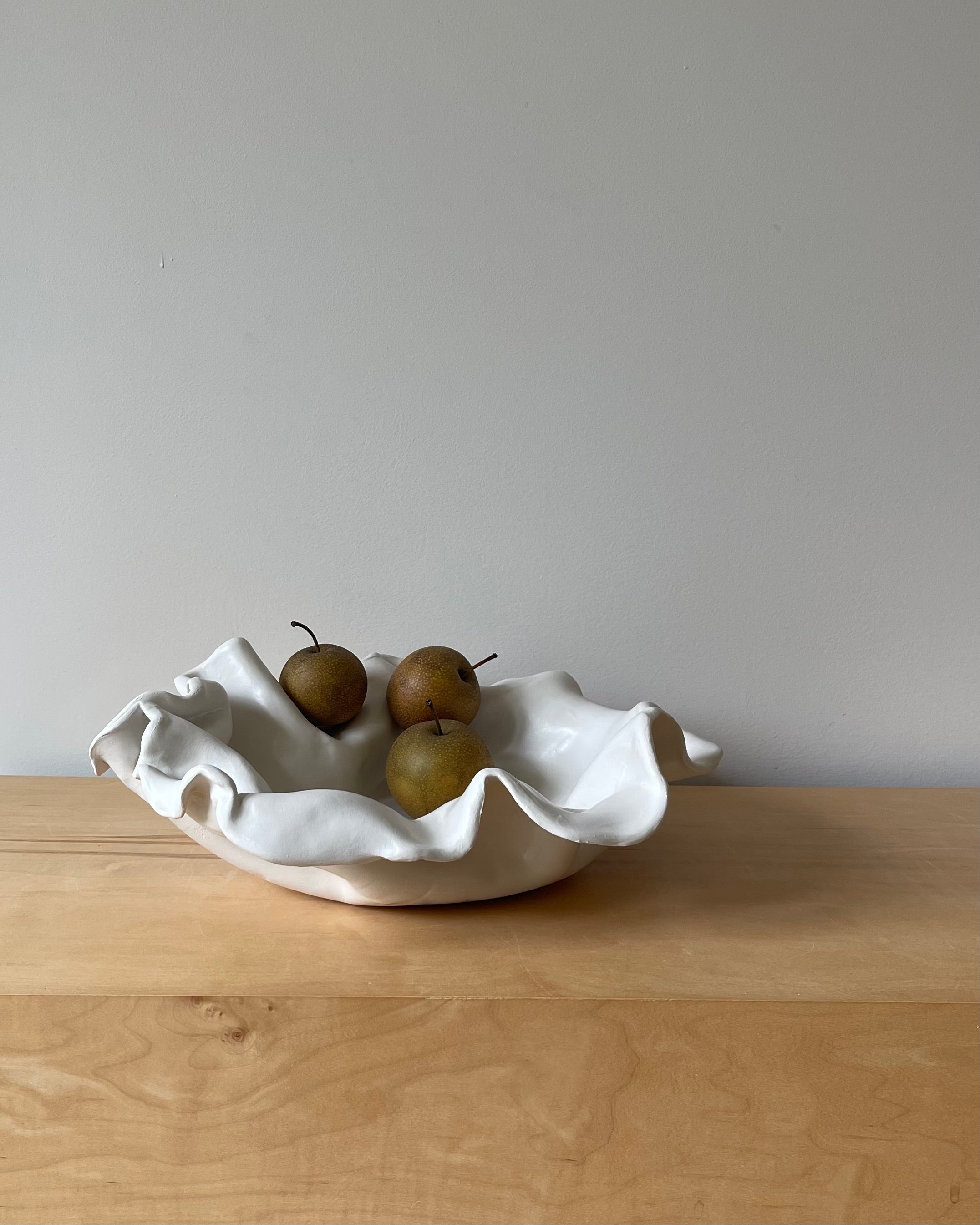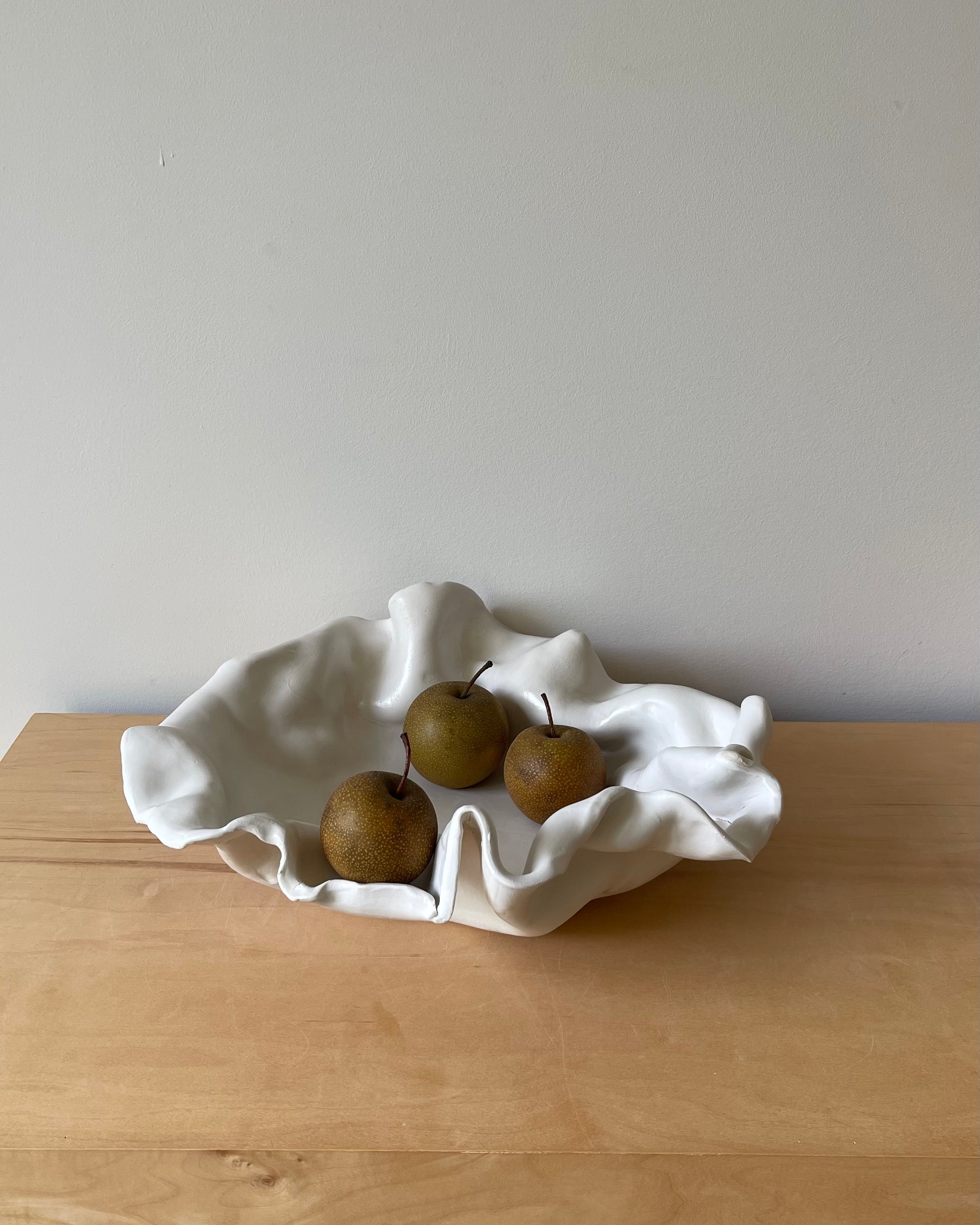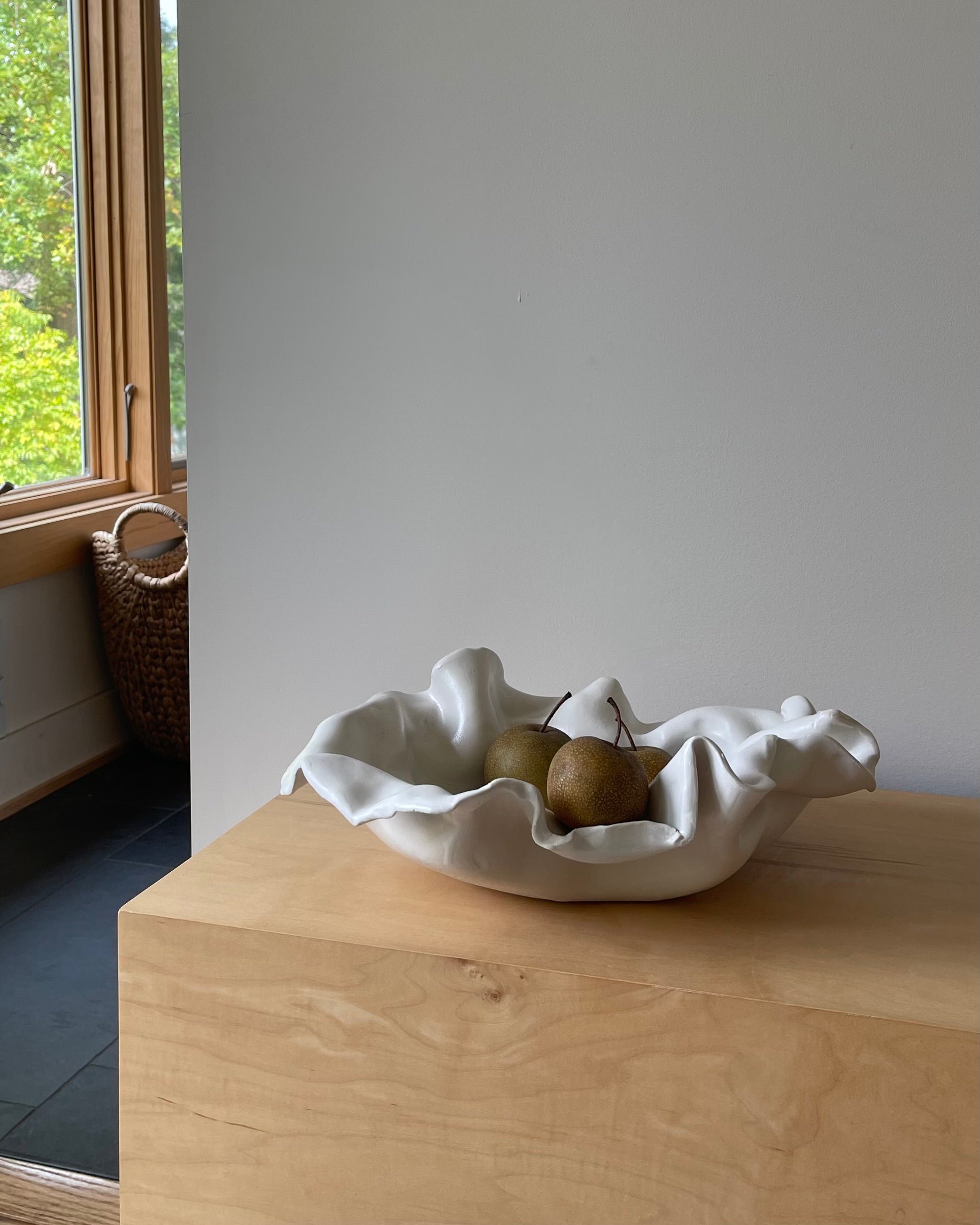 One-of-a-kind, hand-formed bowl. Stoneware finished with matte white glaze.